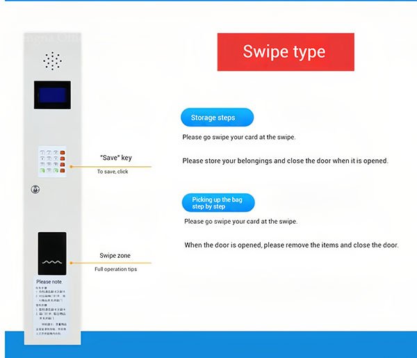 - Intuitive Operation: No complex steps—just follow on-screen or voice prompts. For example, swipe card users only need to tap their card to open a locker, while fingerprint users can store items with a single touch.